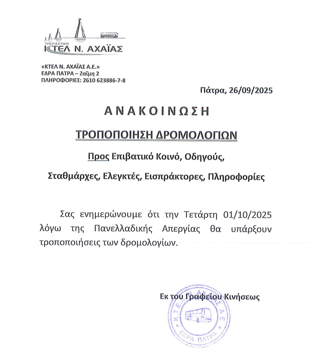 ΑΝΑΚΟΙΝΩΣΗ ΠΡΟΣ ΤΟ ΕΠΙΒΑΤΙΚΟ ΚΟΙΝO